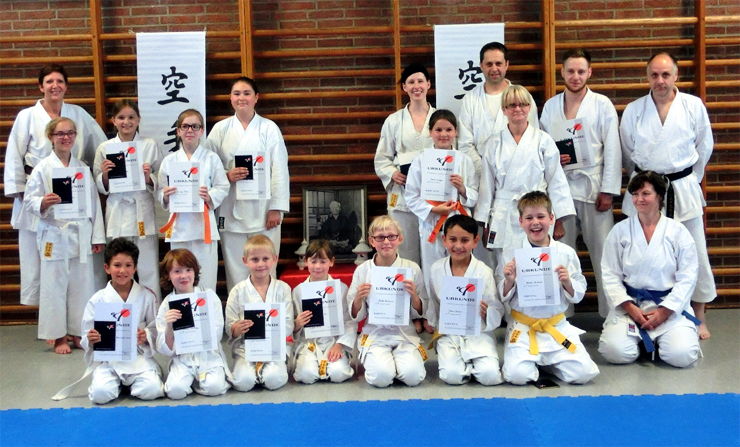 Ihren Weißgurt bestanden Alina Schmidt, Markus Senking, Betke und Torben Kolkmann, Lena Meldau, Eva-Maria Mittelstädt, Petra Barge, Carsten Semmler, Henning Krause, Stina Sieverling (Dojo Holdenstedt). Gelbgurt: Lukas Naskimento Hahn, Lisa Driller (Dojo Ebstorf). Orangegurt: Dennis Becker, Marten Wilhelm. Grüngurt: Paula Knüpfer, Viviane Fink (Dojo Holdenstedt).