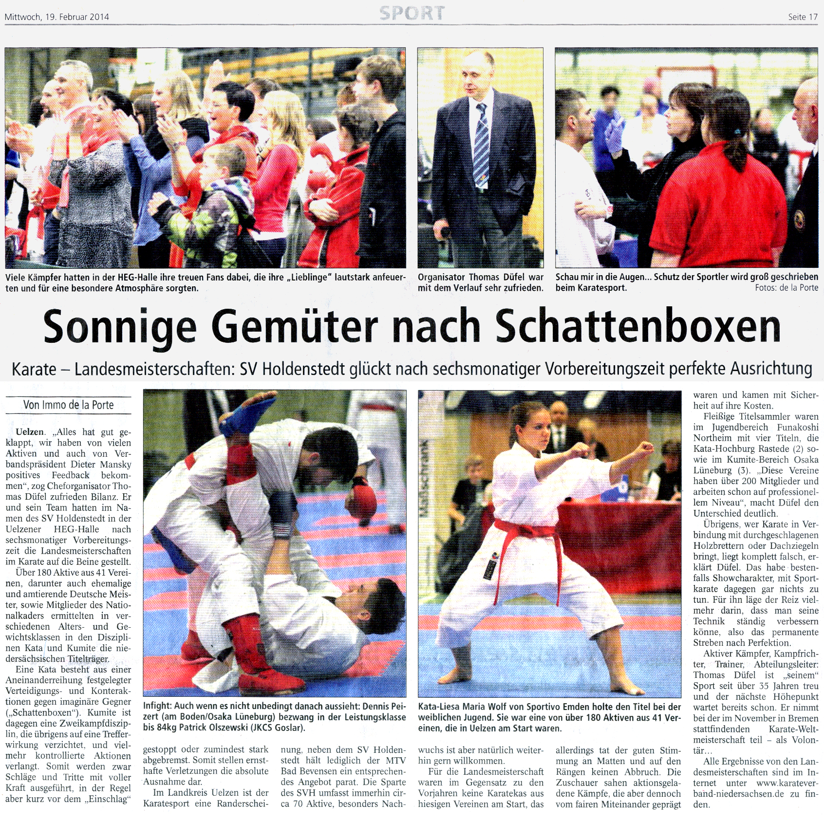Die Karate-Abteilung war Ausrichter der Landesmeisterschaft Karate der Jugend, Junioren, Leistungsklasse und Masterklasse am 15.02.2014 in Uelzen.