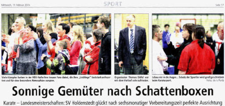 Im Zuge dieser Aktion veranstaltete die Karate-Abteilung des SV Holdenstedt, am 07.04.2013, einen Tag der offenen Halle, bei der die Faszination und Vielseitigkeit dieser Sportart vorgestellt wurde.